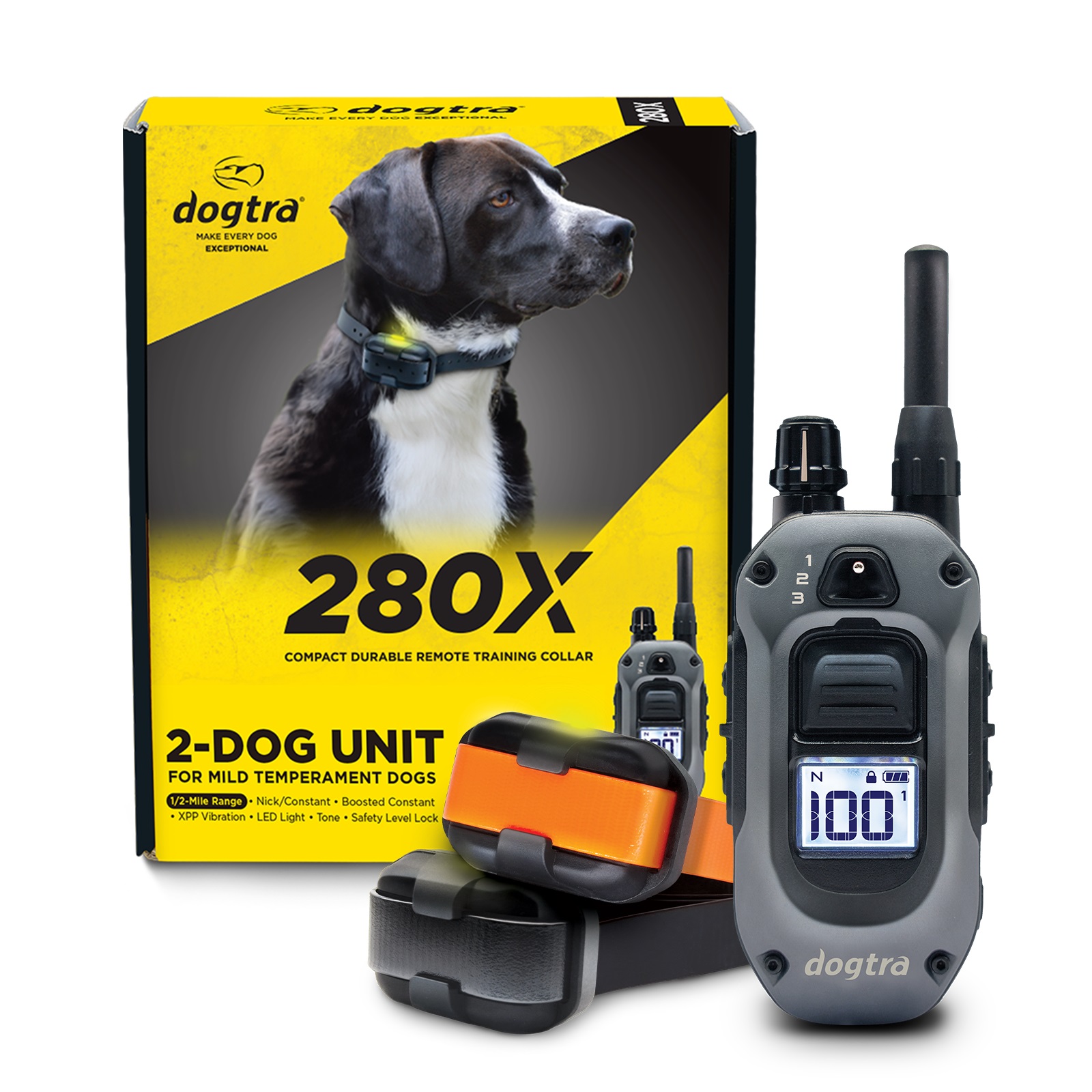 Effortlessly control and gain total attention of TWO dogs with the 280X-2-Dog sytem, the new generation of the trusted 282C e-collar.