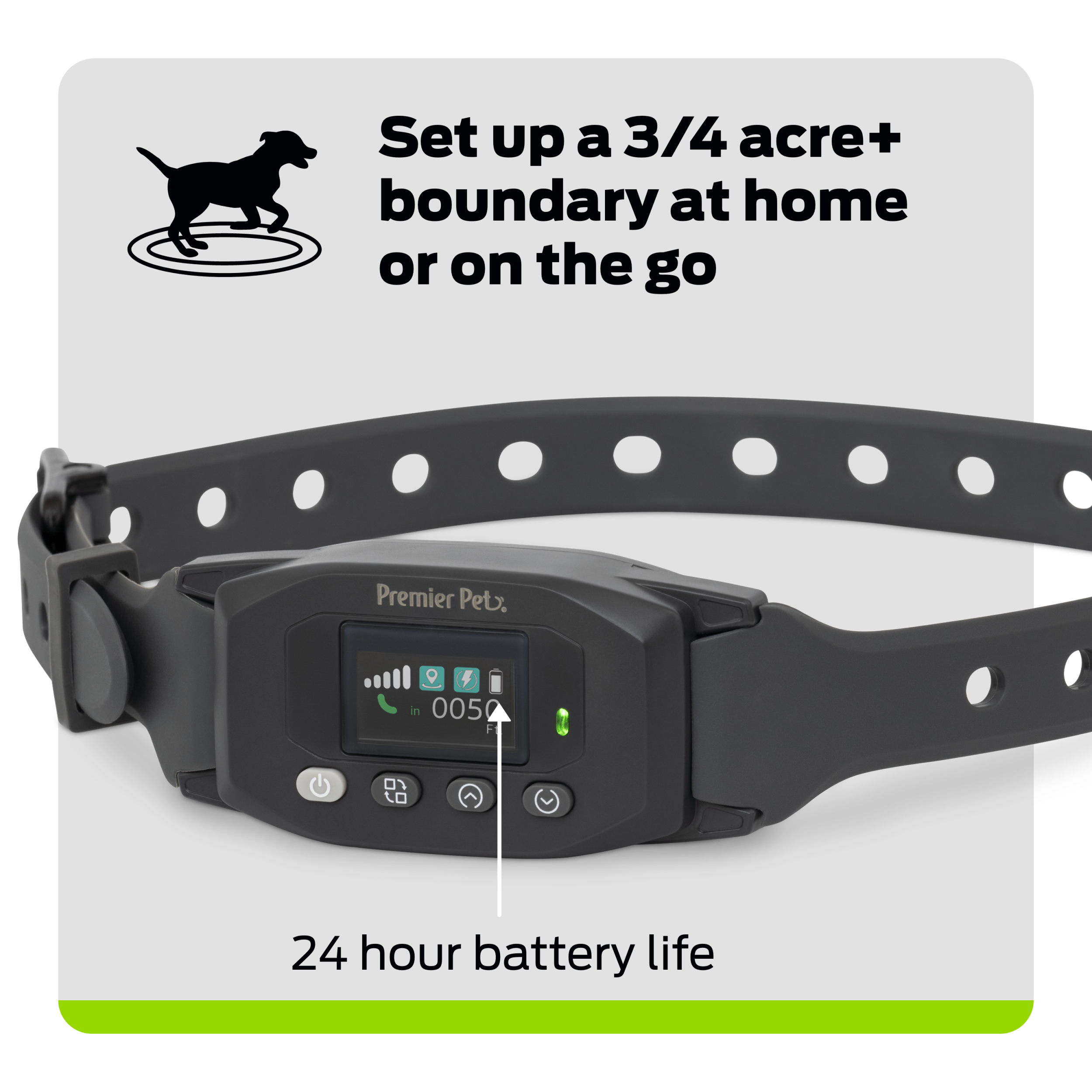 Keep your dog safe in a wireless fence at home or on vacation with the Premier Pet™ GPS Dog Fence.