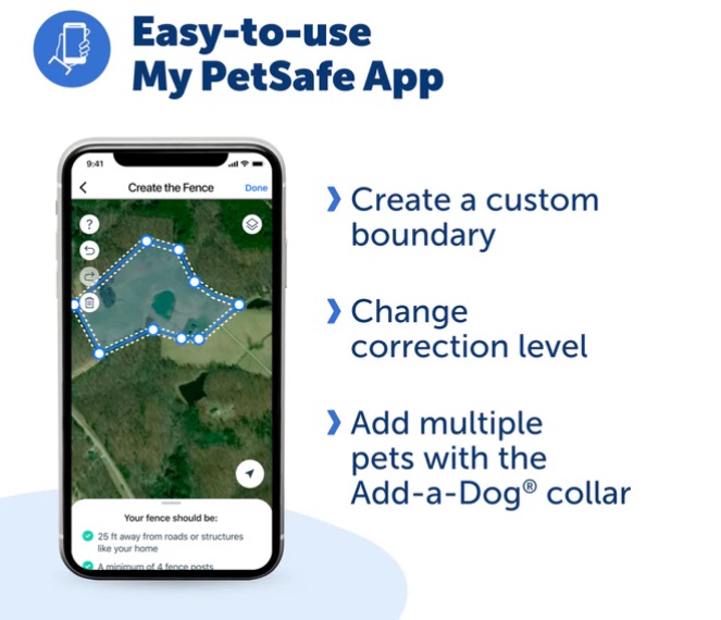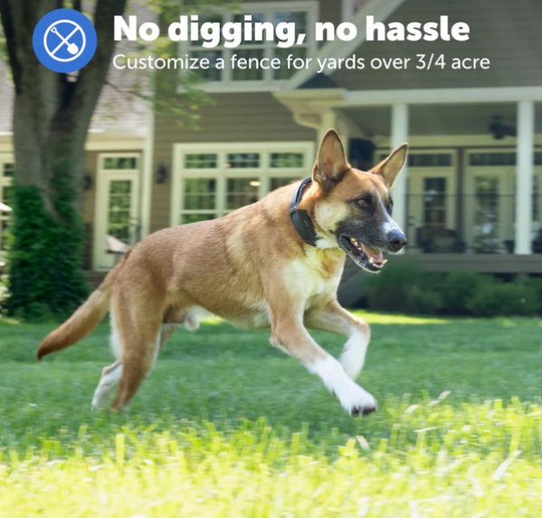 - Easy 1-to-2-hour setup with no digging or burying wires; simply design your fence in the My PetSafe® app to any shape you want (for properties larger than 3/4 acres)