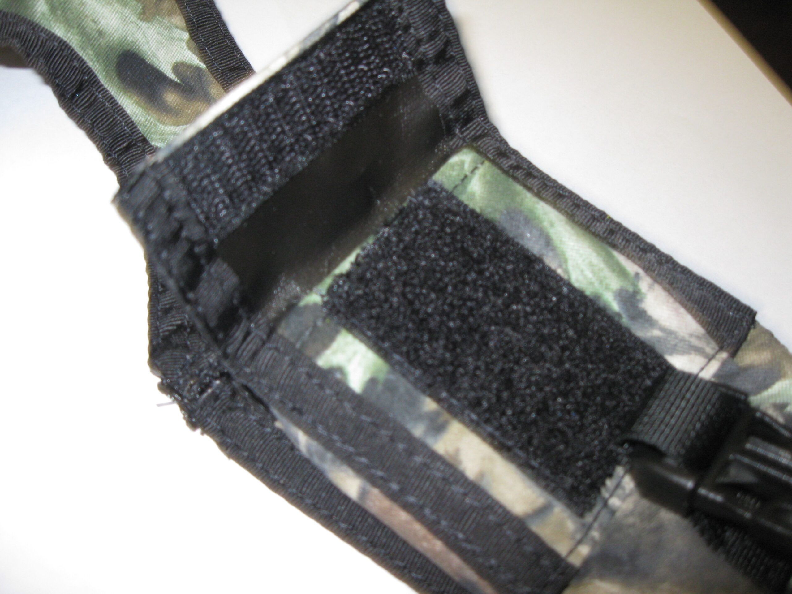 - Back panel pocket is great to carry spare batteries (holds 4 AA batteries), key, money, etc. This pocket is secured with a flap and heavy Velco closure.