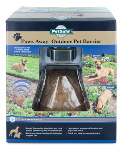 The Pawz Away Outdoor Pet Barrier is disguised as a rock that blends seamlessly into your landscape. Place the Outdoor Pet Barrier in any area you want your pet to avoid. No more getting into the trash, jumping in pools or ponds or digging in flower beds.