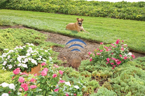 The Barrier Transmitter, disguised as a rock in your landscape, sends a circular radio signal to your pet’s Receiver Collar. When your pet enters the Barrier Area, he’ll hear audible tones from the Receiver Collar followed by a safe, progressive Static Correction. The correction is delivered through the Contact Points of the collar that touch his neck. He’ll quickly associate the correction with the area you’ve declared off-limits.